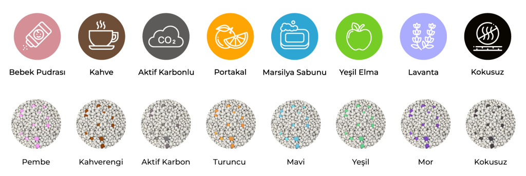 Sıvı ile temas ettiğinde ortaya çıkan doğal koku esansları, evinize ferah ve temiz bir hava katar. Ultra emici yapısı sayesinde nemi hızla absorbe ederek kum kabının kuru kalmasına yardımcı olur. Kolay temizlenebilir ve pati dostu yapısıyla günlük kullanımda rahatlık ve hijyen sağlar.