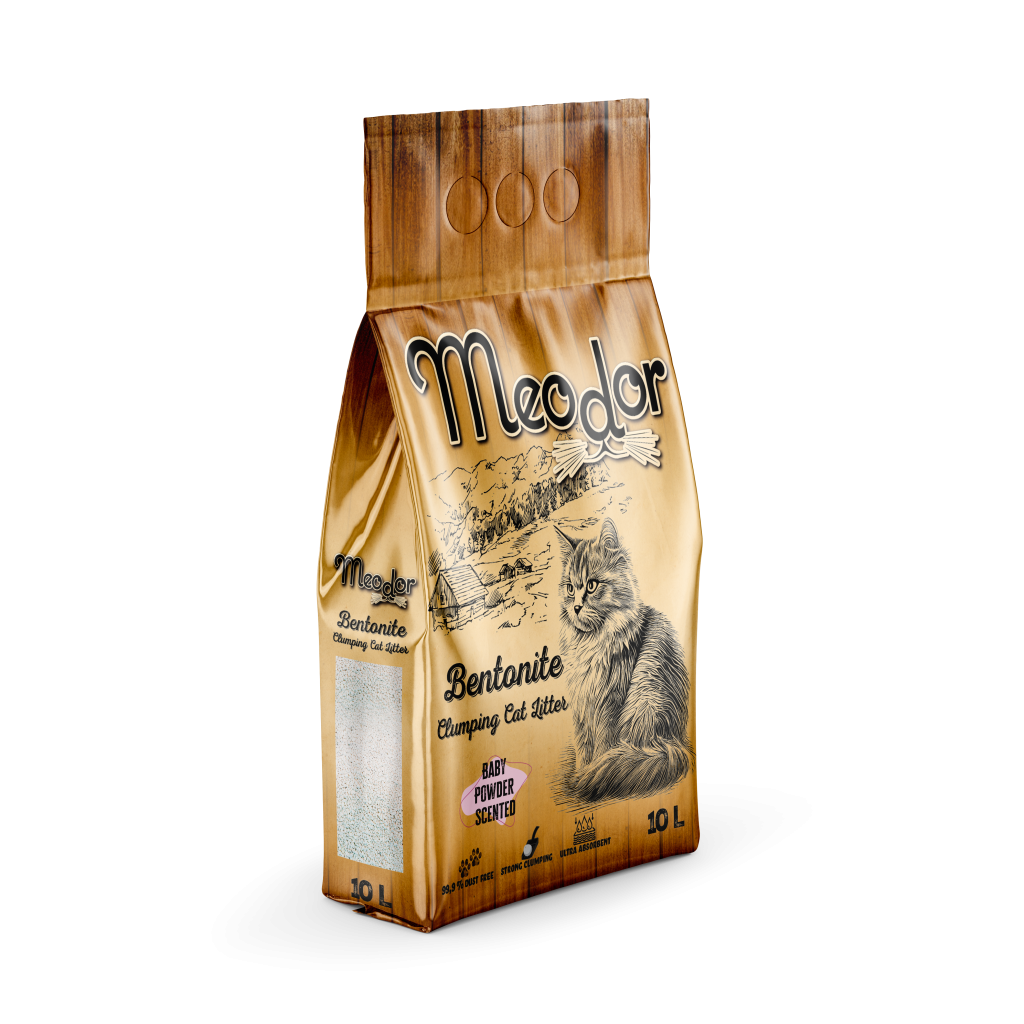 Meodor Bebek Pudrası kokulu kedi kumu, %99,5 tozsuz yapısı ile kediniz ve sizin için sağlıklı bir kullanım sunar. Sıvıyla temas ettiğinde ortaya çıkan ferah bebek pudrası kokusu, kötü kokuları etkili şekilde maskeleyerek evinize temiz ve huzurlu bir hava katar. Güçlü topaklanma özelliği sayesinde kolayca temizlenir, ince granülleri patilere yapışmaz.